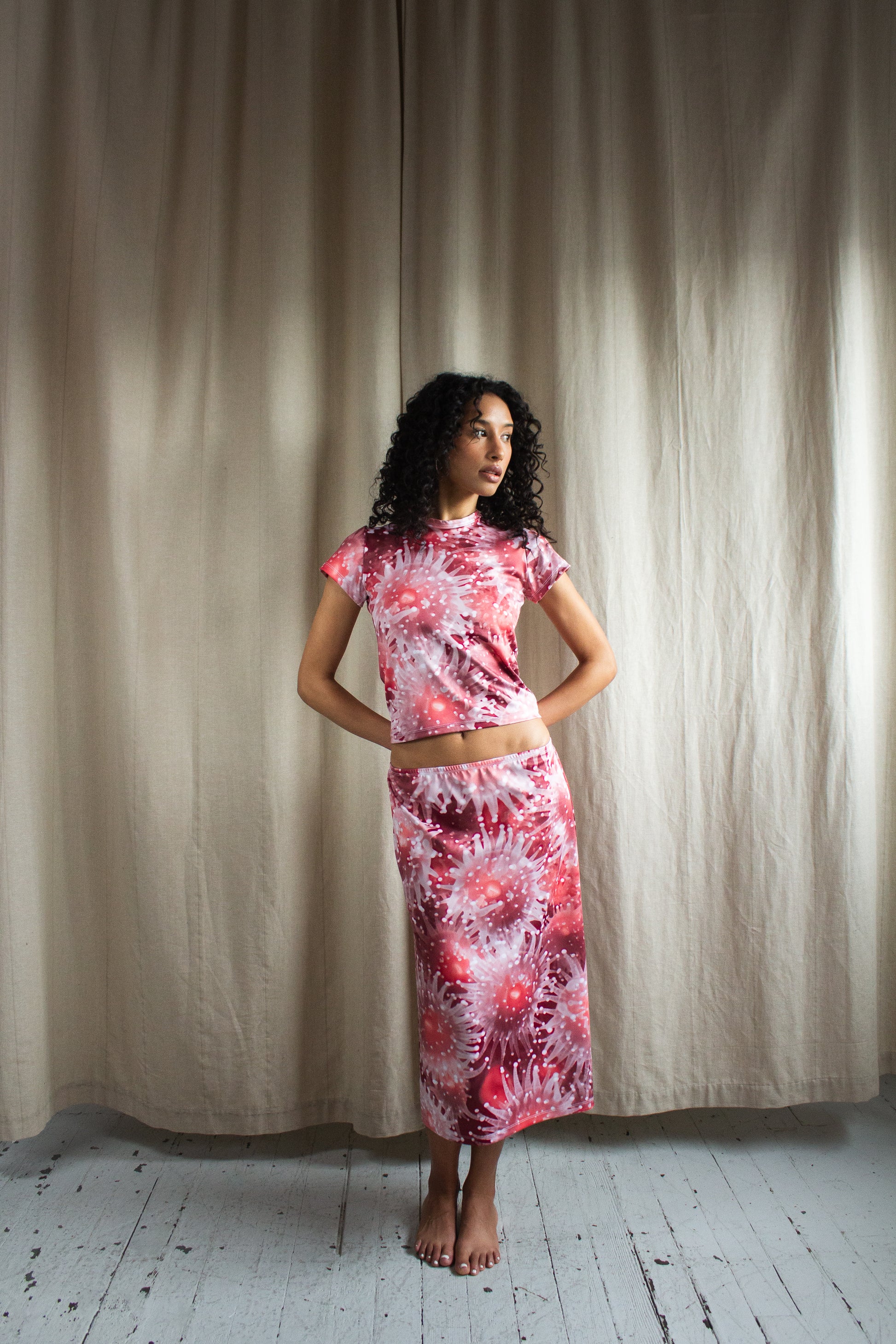 Handmade out of a stretchy, buttery, deadstock, recycled polyester, with a custom sublimation print, designed by us.
