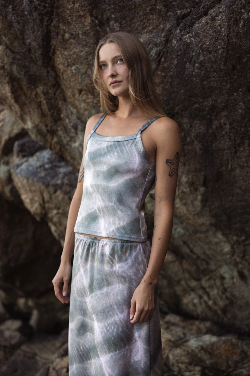 Introducing the Waves Tank. The feeling of a long summer day at the beach. The tide is out, the wind is brushing over your skin, and you can feel the salt from the ocean tighten on your face. Maybe you even have a sunburn.